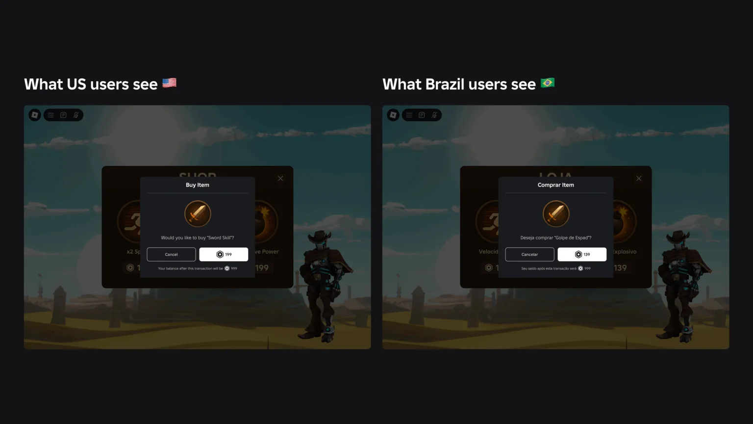 Na prática, um passe que custa 1.000 Robux nos Estados Unidos pode ter seu preço reduzido para 700 Robux para usuários no Brasil, por exemplo. A compra é tornada mais acessível em países com menor poder aquisitivo, o que atrai mais usuários internacionais.